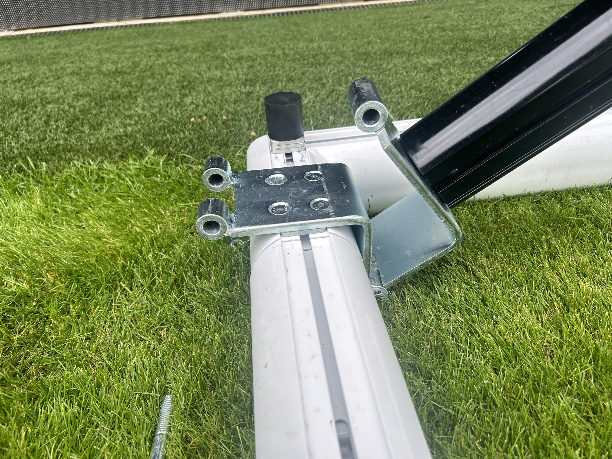 - Goal is powder coated white with black net supports