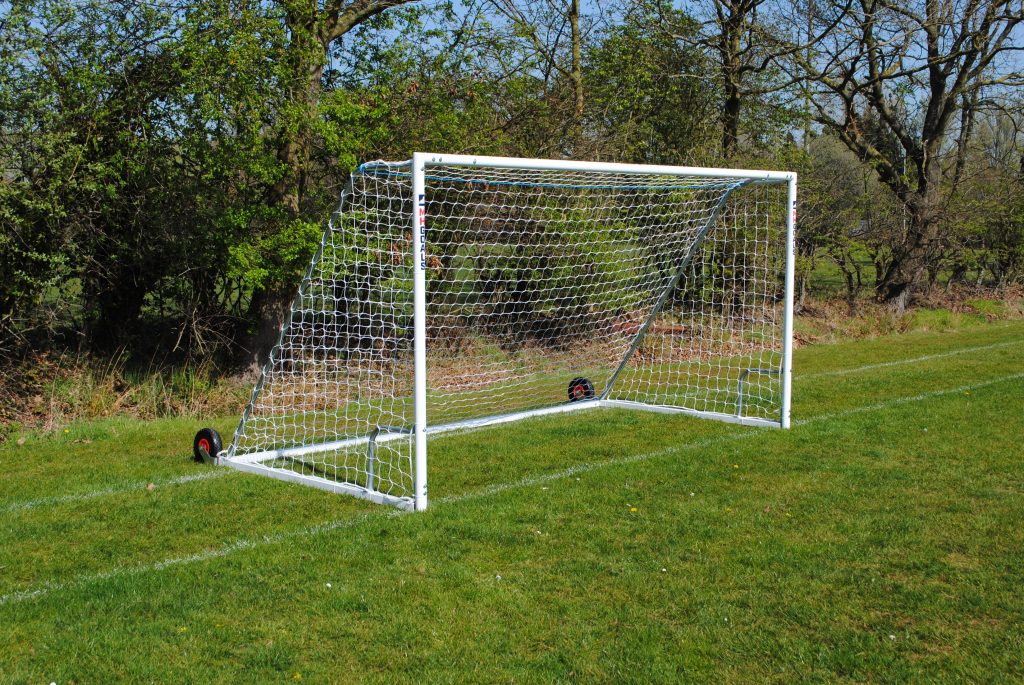 A durable manoeuvrable 60mm steel framed goal with excellent ground clearance when the wheels are down, and great stability when in place.
