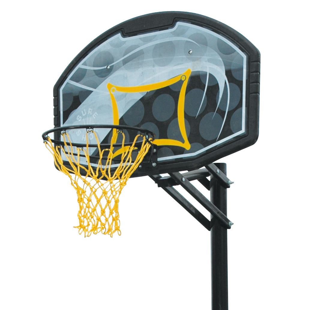 - Adjustable board and ring allowing the height to be set between 2.44 and 3.05m